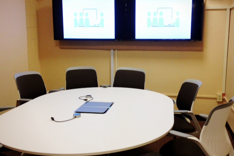The R Lab is a multi-use room available for events and larger group meetings. There is seating for 15+, several computers, and large wall monitors. The space is available for studying when it's not reserved. Find out more and request a reservation.